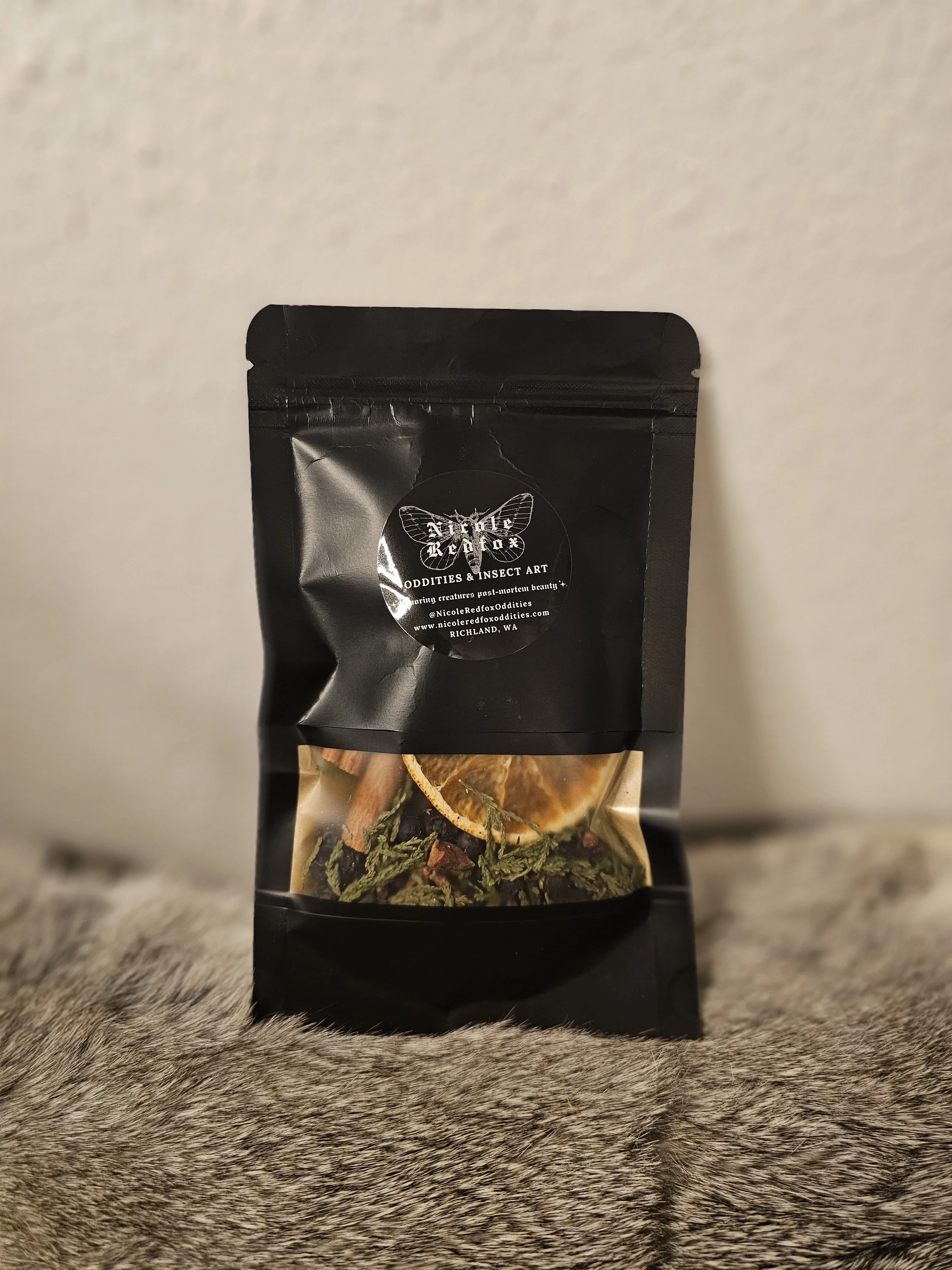 Orange option: dried oranges, cinnamon sticks, cedar, anise, cloves, juniper berries