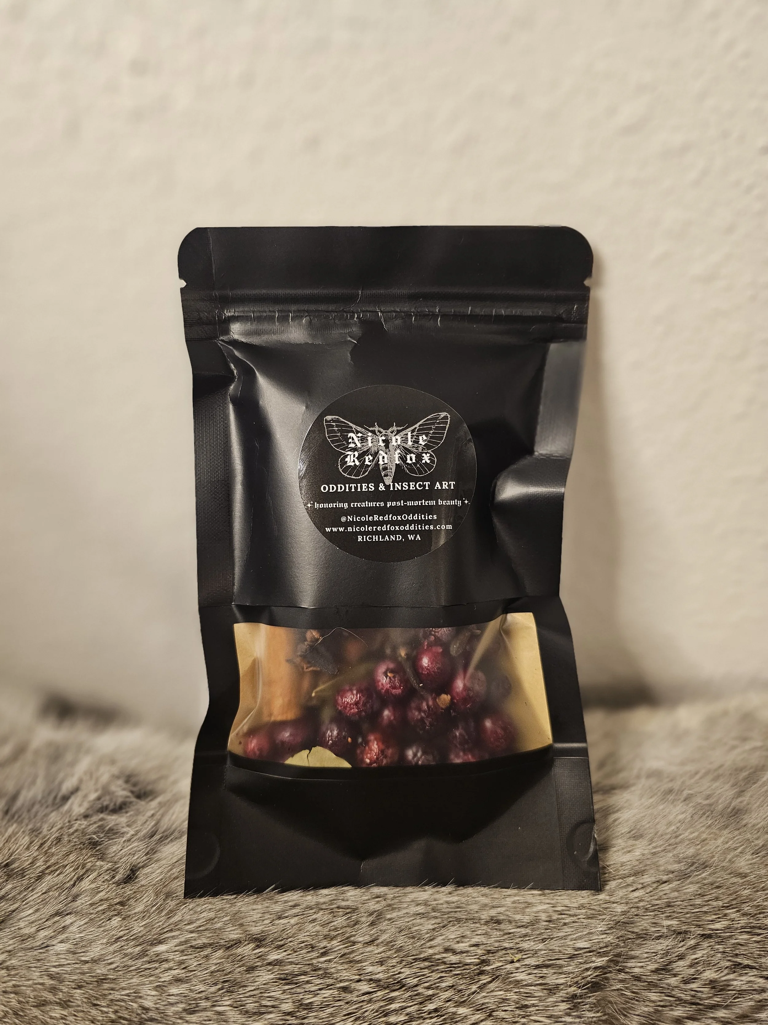 Apple option: dried apples, cinnamon sticks, dried cranberries, cloves, bay leaves, anise
